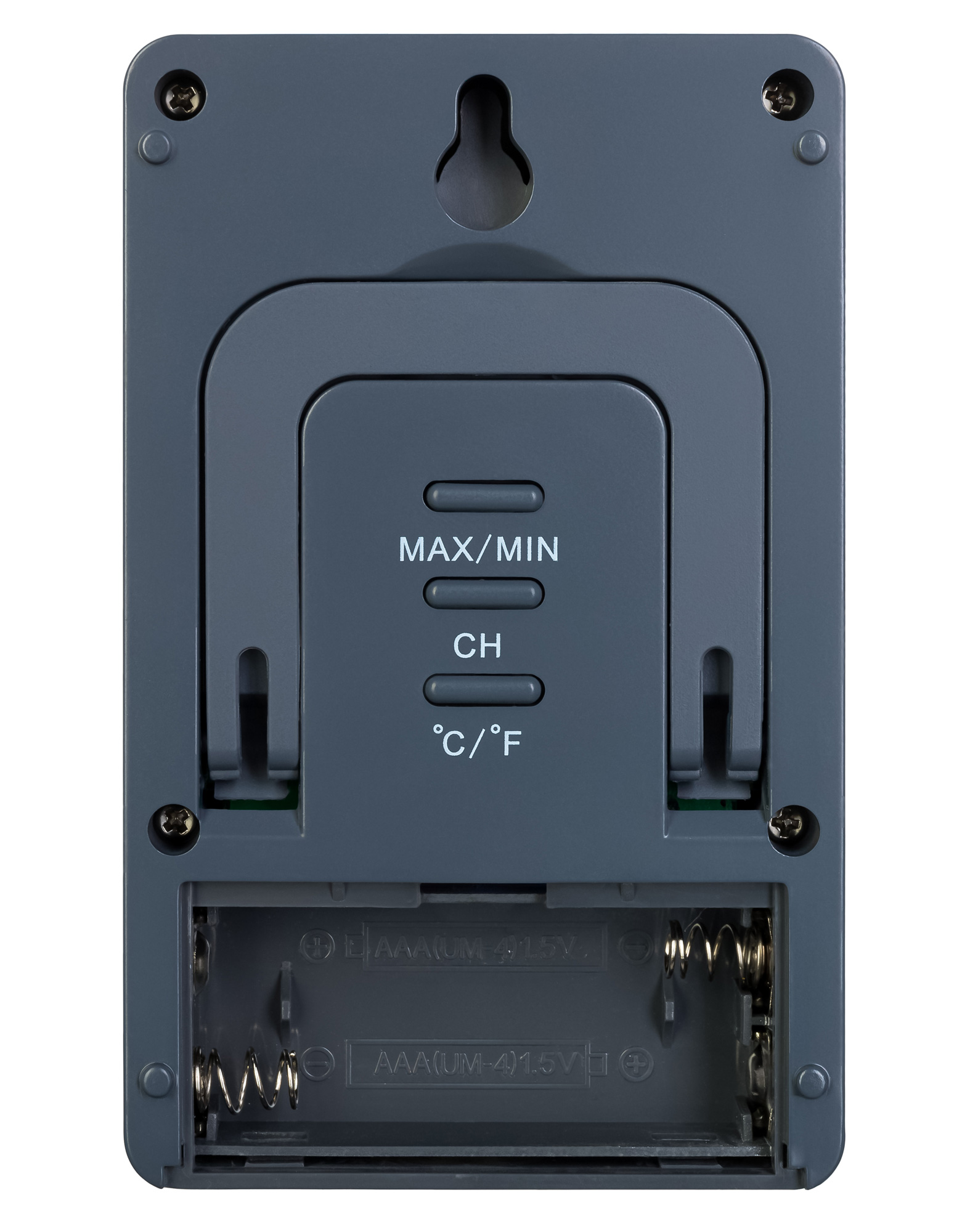 Датчик передает измерения на термометр по радиоканалу, т. е. без участия проводов. Питание датчика и основного модуля – стандартные батарейки.