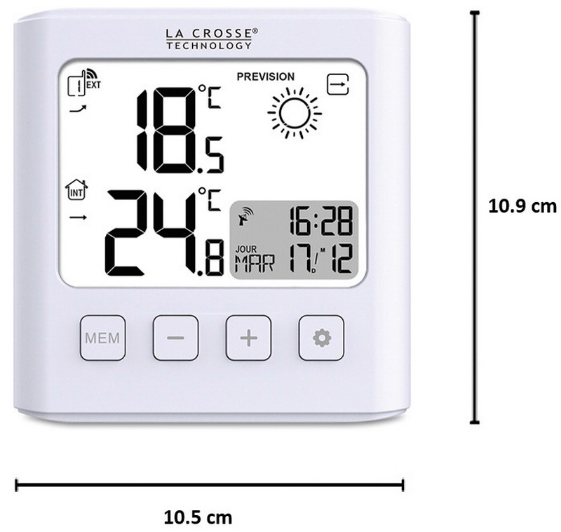 Метеостанция с отображением прогноза погоды на ближайшие 12 часов, измерением внутренней и внешней температуры и относительной влажности.