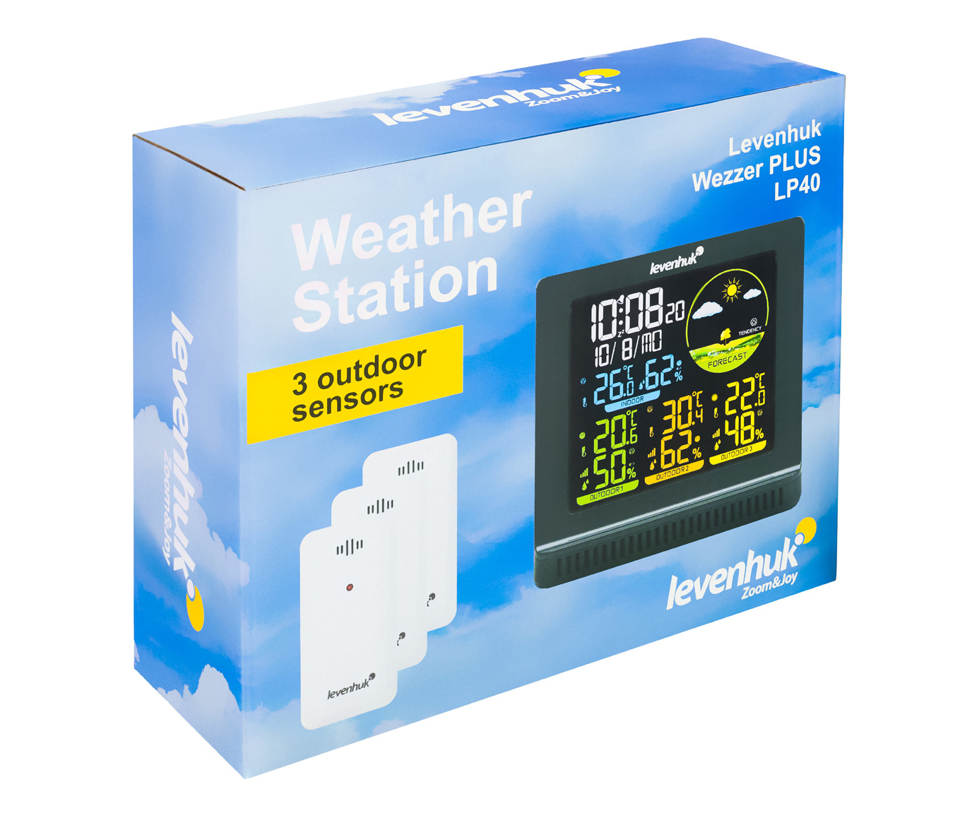 Levenhuk Wezzer PLUS LP40 – домашняя погодная станция с удобным цветным экраном и тремя выносными термогигродатчиками в комплекте. Прибор дает возможность своевременно узнавать о приближающейся непогоде, а также отслеживать изменения микроклимата в жилых и хозяйственных помещениях. Станция отлично проявит себя в загородном доме и на дачном участке, где нужно охватить обширную территорию – расстояние между основным блоком и датчиками может достигать 100 метров.