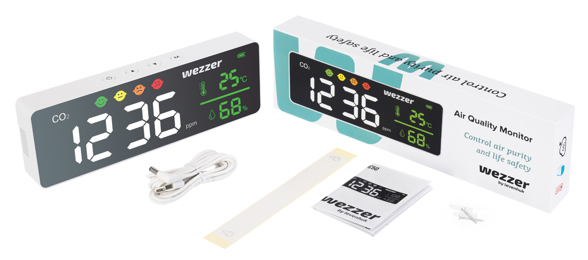 Монитор качества воздуха Levenhuk Wezzer Air MC50 измеряет и демонстрирует на ЖК-экране уровень содержания углекислого газа. Это очень важный параметр, определяющий качество вдыхаемого воздуха, а значит, и ежедневное самочувствие людей, находящихся в помещении. Высокая концентрация двуокиси углерода – невидимая, но серьезная опасность, которая может повлечь за собой повышенную утомляемость, головную боль, снижение работоспособности и другие неприятные симптомы. Улучшайте качество воздуха вместе Levenhuk Wezzer Air, чтобы быстро и просто повысить качество жизни!