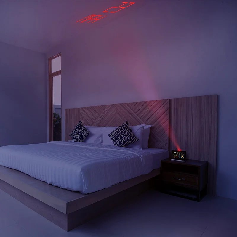 Дополнительно: USB-порт для зарядки мощностью 1 ампер; проекция на стену под углом 270 ° с 5 уровнями интенсивности Без подключения к Wi-Fi проекция покажет : Час Температура и влажность в помещении С подключением W