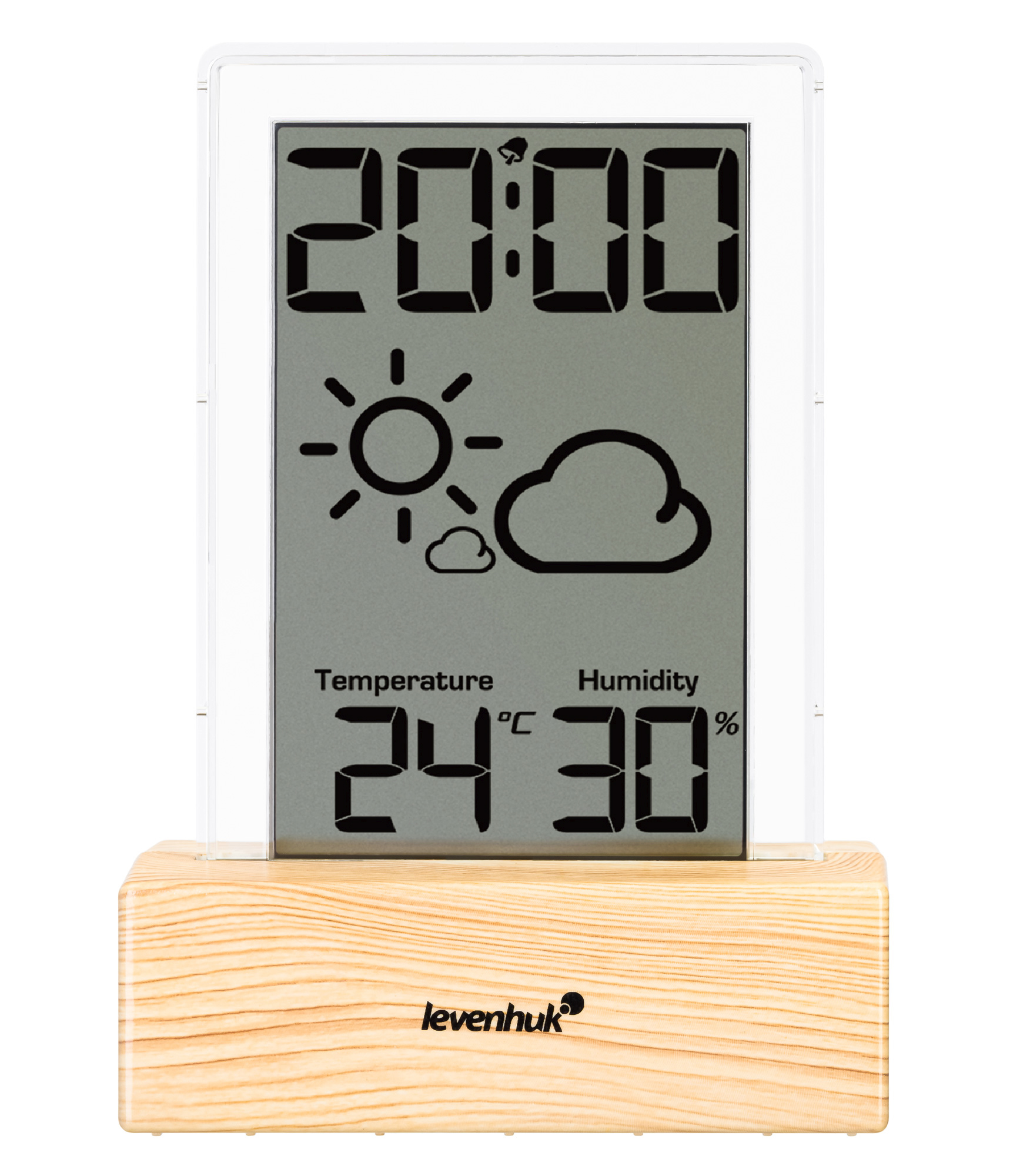 Levenhuk Wezzer BASE L60 не требует подключения к сети и прокладки проводов по квартире, так как работает от батарейки. Помимо значений влажности и температуры, на экран прибора выводится одна из пяти иконок прогноза погоды. Верхняя часть экрана отведена под часы, крупные цифры хорошо различимы с большого расстояния. Элегантный прибор отлично заменит собой настольные часы-будильник на прикроватной тумбочке. Сигнал будильника можно отложить одним нажатием кнопки – он зазвучит повторно через 5 минут.