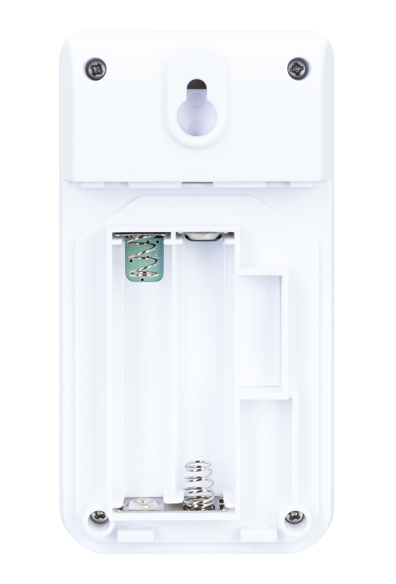 Кнопки управления вынесены на заднюю стенку, поэтому ничто не вмешивается в лаконичный дизайн прибора. Основной блок и датчик снабжены настенными креплениями.