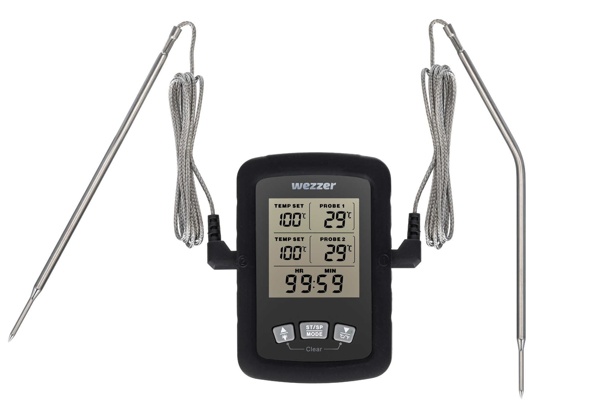 Термометр Levenhuk Wezzer Cook MT60 с двумя щупами на гибких кабелях – весьма полезное устройство для любой кулинарной работы. Он позволяет измерять температуру двух блюд одновременно, причем расположенных в разных местах: например, одно может быть на плите, а второе – на гриле. А благодаря функции настраиваемого уведомления этот термометр может сообщать, если температура приготовления становится выше необходимой, – это позволит избежать подгорания мяса или чрезмерного высушивания выпечки. Также здесь есть встроенный таймер.
