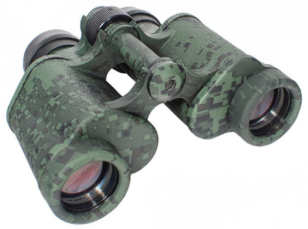 Оптика бинокля помещена в прочный алюминиевый корпус, покрытый искусственной кожей камуфляжной расцветки. Бинокль имеет защиту от брызг и пыли, а также выдерживает экстремальные температуры.