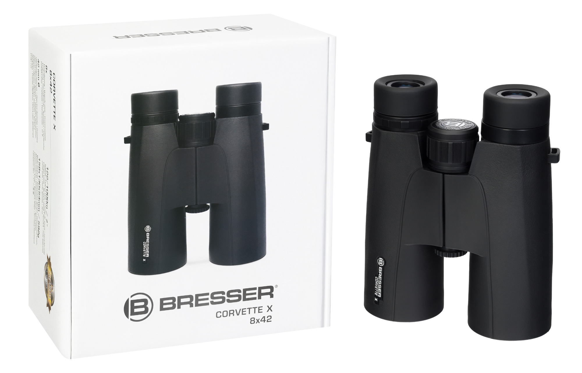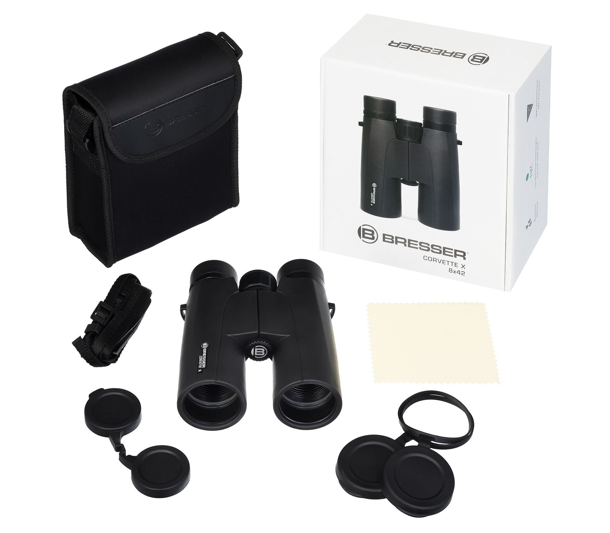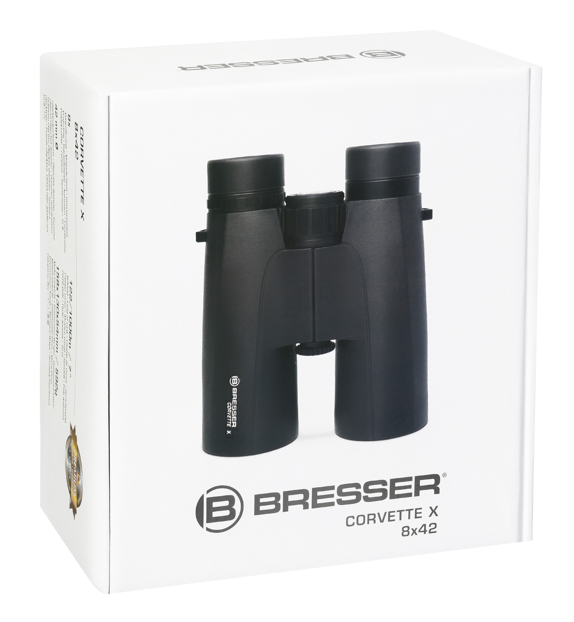 Бинокль Bresser Corvette X 8x42 WP – полевая модель с водозащищенным корпусом и оптимальным соотношением увеличения и светосилы. Оптика хорошо работает как при ярком солнце, так и при низкой облачности, четко прорисовывает детали в сумерках и на рассвете, когда мало внешнего освещения, а 8-кратного увеличения хватает для решения любых наблюдательных задач на местности. Бинокль отлично подходит для использования на рыбалке, охоте и в походе.