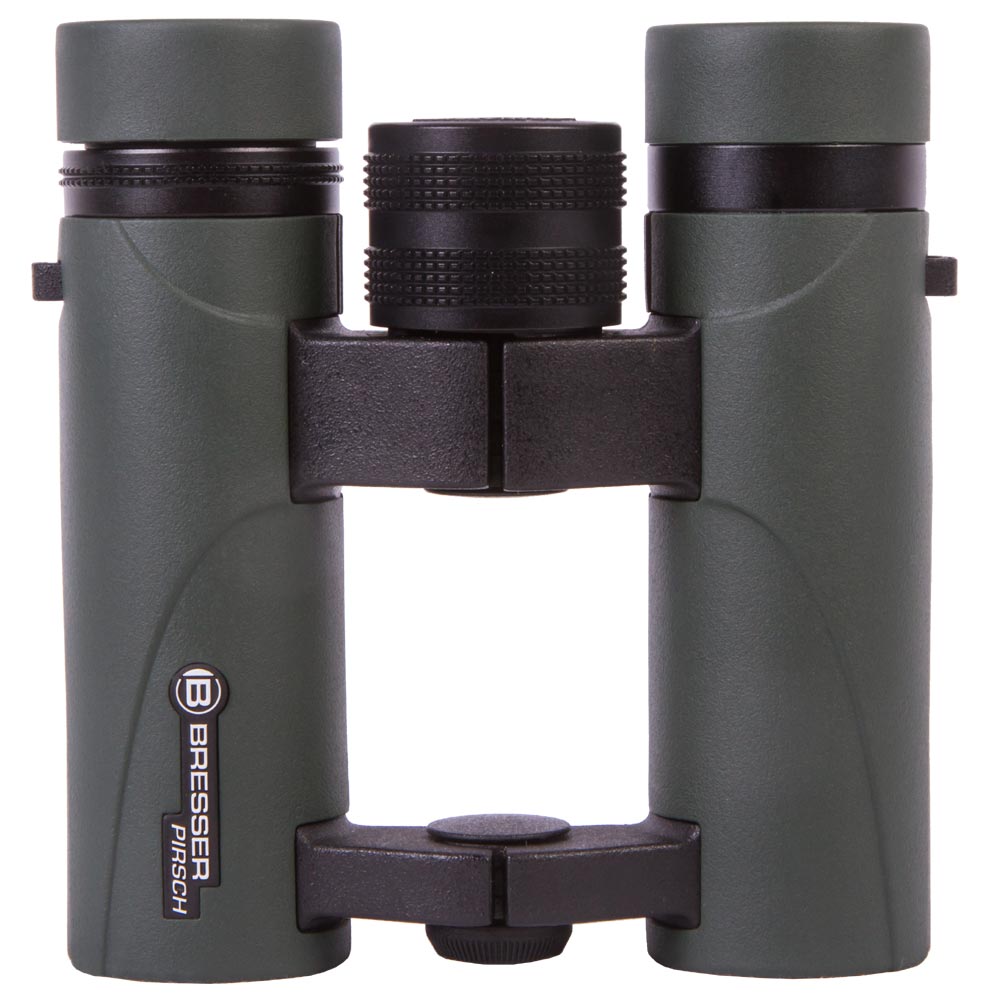 Бинокль Bresser Pirsch 10x26 подойдет тем, кто носит очки: в нем установлены окуляры с вынесенным зрачком и поворотно-выдвижные наглазники. На правом окуляре расположено кольцо диоптрийной коррекции. Барабан фокусировки находится в центре. Можно регулировать расстояние между зрачками.