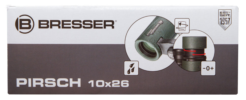 В бинокле используются компактные roof-призмы с фазокорректирующим покрытием, которое улучшает цветопередачу и помогает оптике передавать максимально яркое и четкое изображение. На линзы нанесены сразу два покрытия: просветляющее и светоотражающее. Оба служат для защиты от паразитных бликов и помогают оптике лучше собирать свет. С биноклем Bresser Pirsch 10x26 по всему полю зрения вы будете наблюдать ясное и контрастное изображение. Небольшой ближний фокус в 2 метра позволяет использовать модель и в помещениях.