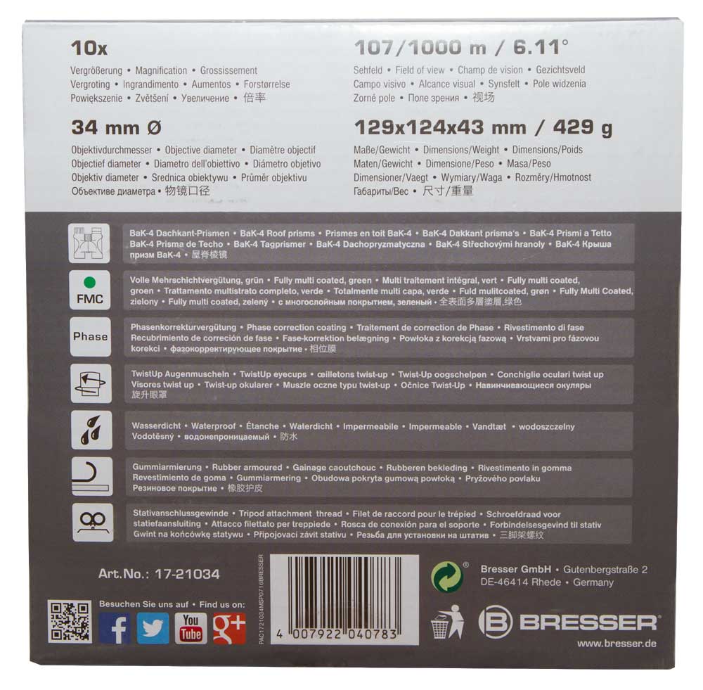 Бинокль Bresser Pirsch 10x34 – компактный оптический прибор, дающий 10-кратное увеличение. Он идеально подойдет активному человеку, которому нужен бинокль для обзорных наблюдений. Bresser Pirsch 10x34 передает картинку высокого качества, прекрасно собирает свет, не боится дождя и экстремальных температур. Он станет отличным выбором для изучения природных ландшафтов, городских пейзажей, диких животных и птиц. Рекомендуем этот неприхотливый бинокль для турпоездок и путешествий.