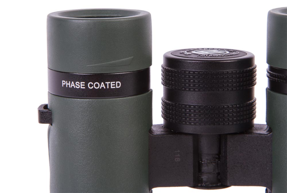 Внутри бинокля установлены современные roof-призмы с фазовой коррекцией. Линзы покрыты светоотражающим покрытием и многократно просветлены. Оптика передает ясную картинку, свободную от паразитной засветки. Изображение получается насыщенным и ярким, а окружающий мир радует изобилием красок. Широкоугольная оптика позволяет охватывать одним взглядом протяженные области и изучать группы объектов на значительном удалении.