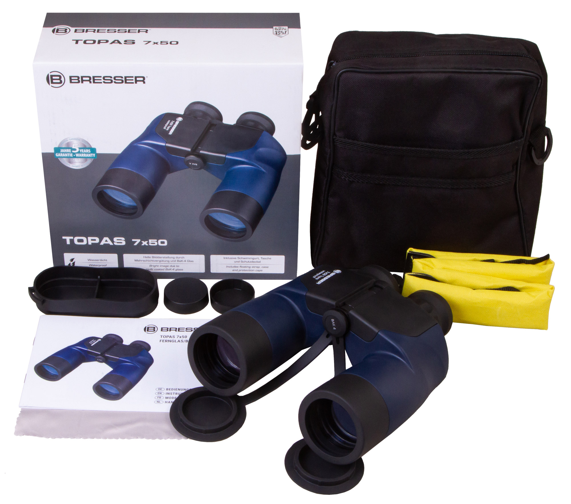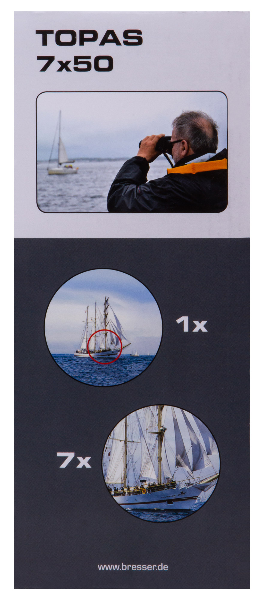 Bresser Topas 7x50 WP – классический морской бинокль с 7-кратным приближением и объективами диаметром 50 мм. Он водозащищен и прекрасно адаптирован для использования на воде и вблизи нее. Бинокль подойдет заядлым рыбакам и яхтсменам, его также можно брать с собой на прогулки на катере или использовать в профессиональной деятельности.