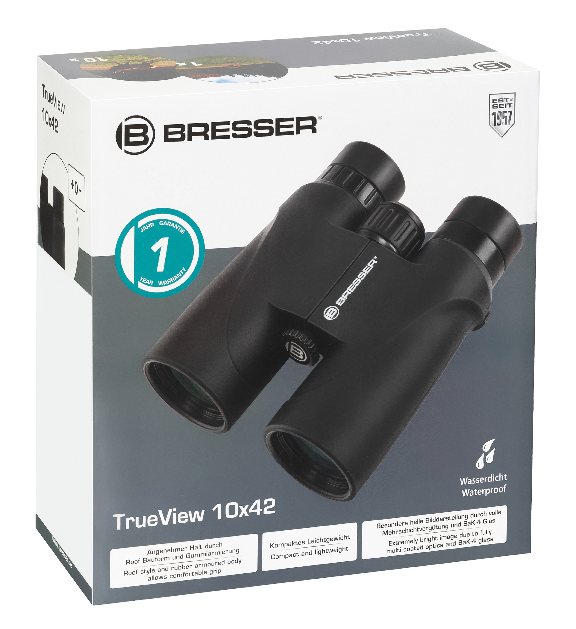 Bresser TrueView 10x42 WP – водозащищенный полевой бинокль с 10-кратным увеличением, который станет хорошим помощником на охоте, в исследовательской экспедиции или походе. Он не боится непогоды и может без опасений использоваться вблизи воды, поэтому его можно захватить и на борт лодки. Благодаря roof-призмам бинокль компактнее многих аналогов и не обременяет во время путешествий и приключений.