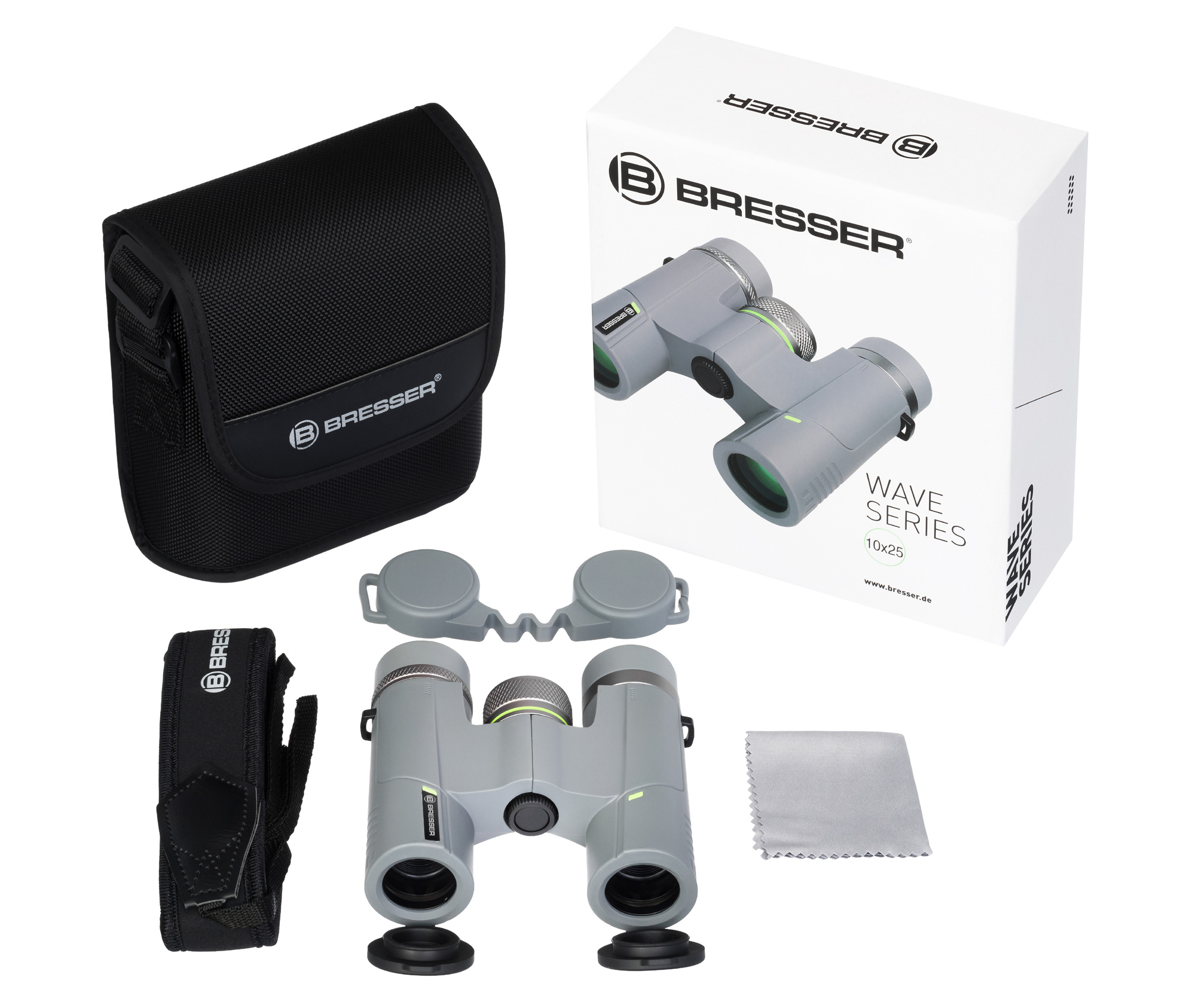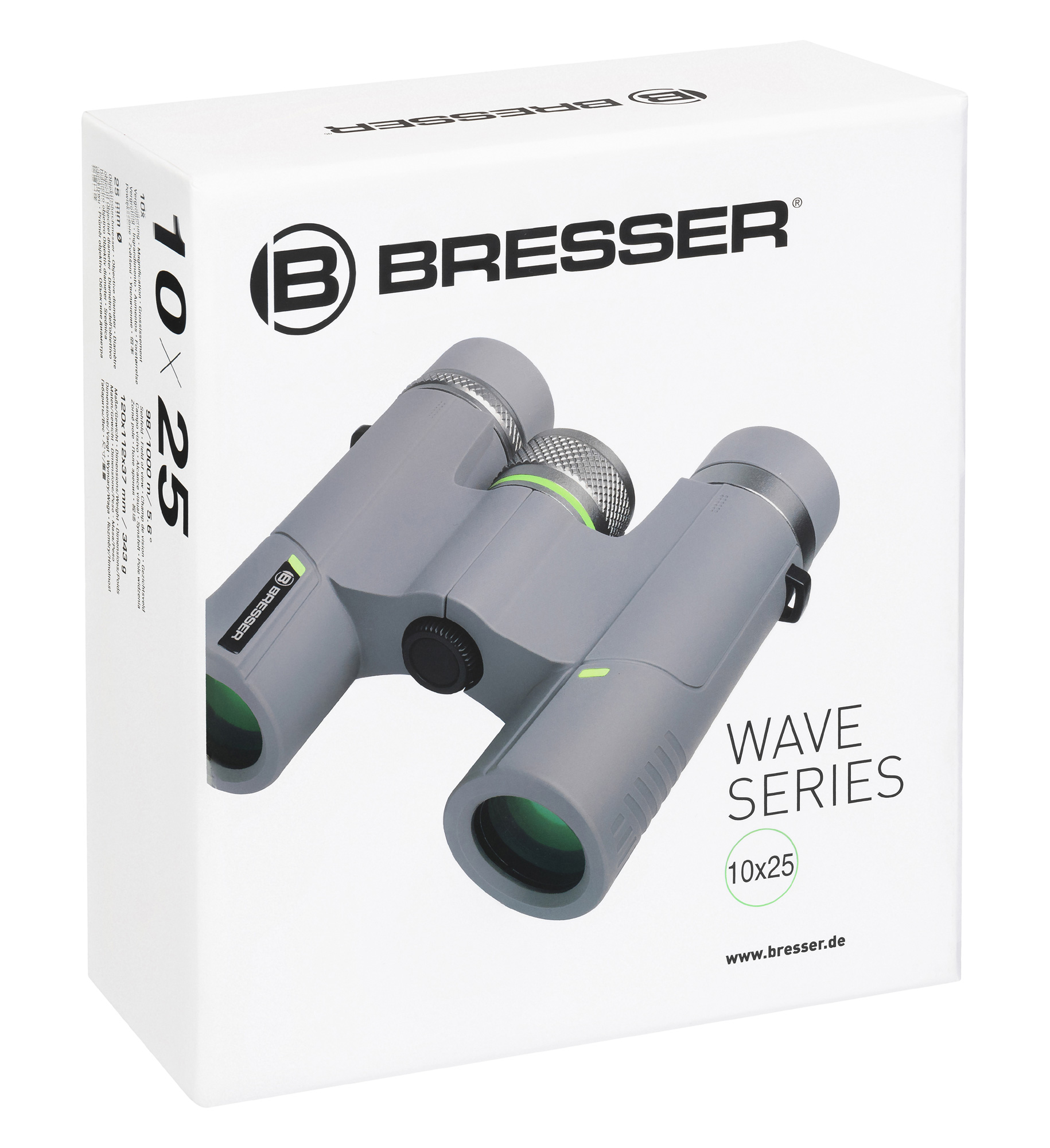 Возможности бинокля Bresser Wave 10x25 порадуют тех, кто не хочет упускать ни одной детали, но при этом не желает носить с собой громоздкий оптический прибор. Эта модель очень компактна, мало весит, водозащищена, обеспечивает хороший обзор и позволяет изучать окружающий мир на увеличении в 10 крат. Это отличный бинокль, чтобы проследить за полетом стаи птиц, пройти по следам дикого зверя, найти подходящее место для стоянки в лесу или просто понаблюдать за природой. Bresser Wave 10x25 – универсальная модель, одинаково хорошо подходящая и для прогулки, и для похода.