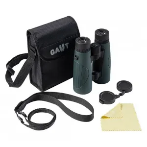 GAUT Polaris 10x42 WP – доступная модель водозащищенного полевого бинокля. Он хорошо проявит себя на охоте или рыбалке при любой погоде, может применяться для охраны и слежения. Оптика прибора построена на roof-призмах, поэтому оптические трубы отличаются небольшими габаритами. На поверхности труб есть рельефные вставки – бинокль хорошо удерживается даже влажными руками.
