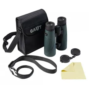 Многослойное просветление линз GAUT Polaris 8x42 повышает светопропускание бинокля. Оптика на roof-призмах изготовлена из стекла BK-7. Резкость настраивается с помощью барабана центральной фокусировки, кольцо на окуляре позволяет регулировать диоптрии. Корпус сделан из пластика, на оптических трубах есть рельефные вставки, повышающие надежность хвата. Откидные крышки защищают объективы от повреждений и попадания влаги.