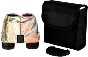 Камуфляжный дизайн идеально дополнит охотничий или рыболовный костюм и порадует ценителей активного отдыха на природе. Бинокль укомплектован дополнительными аксессуарами: чехлом для хранения, ремешком для переноски и салфеткой для оптики.