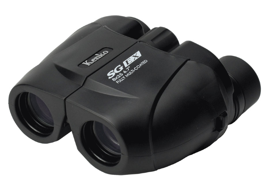 Kenko SG EX 10x25 WP оснащен центральным фокусировочным барабаном, позволяющим настраивать резкость одновременно на обоих окулярах. На одном из них есть кольцо диоптрийной коррекции – оно поможет компенсировать разницу в остроте зрения на правом и левом глазу. Оптику на призмах Porro защищает от пыли, влаги и механических повреждений обрезиненный корпус из композитного материала. Изнутри он заполнен азотом – линзы не запотевают даже при резком скачке температуры или в условиях высокой влажности воздуха.
