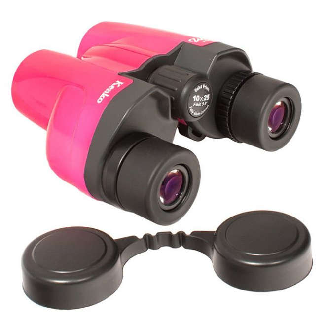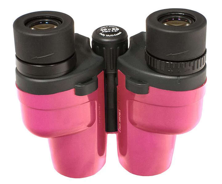 - Легкий бинокль яркого розового цвета с призмами Porro