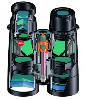 Leica Ultravid 8x50 HD-Plus выстраивает свободное от хроматических аберраций изображение, так как линзы прибора сделаны из ED-стекла, а на roof-призмы нанесено фазокорректирующее покрытие P40. Никаких цветных ореолов и прочих искажений! За высокую яркость и превосходный контраст картинки отвечают несколько слоев просветления HDC Plus и система HighLux-System HLS, выводящая светопропускную способность бинокля на непревзойденный уровень. Призмы, собранные по этой системе, снабжены дополнительными перегородками и покрыты антибликовым составом, что снижает рассеивание света при переотражениях.