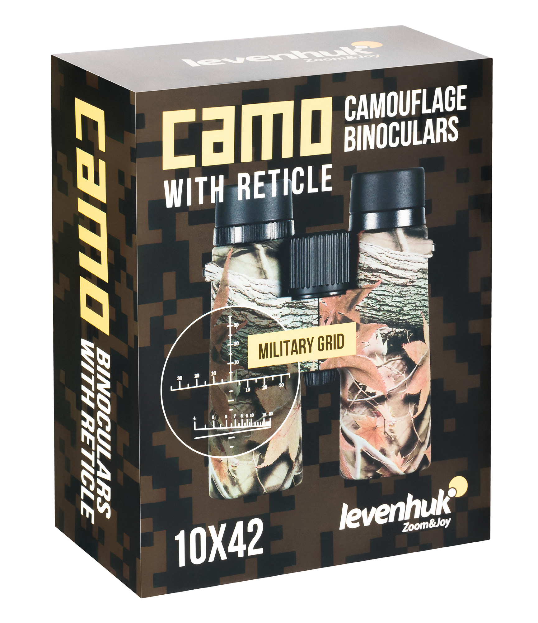 Камуфлированный бинокль Levenhuk Camo Moss 10x42 – отличное решение для осенней охоты. Оптический прибор приближает отдаленные объекты в 10 раз и дает возможность рассчитывать дистанцию до них, чтобы сделать эффективный выстрел. Кроме того, доступно определение примерной высоты цели, горизонтальных и вертикальных углов. Это становится возможным благодаря наличию в одном из окуляров угломерной сетки и дальномерной шкалы. Еще одно преимущество бинокля – компактный размер за счет применения roof-призм: прибор занимает немного места и удобен в переноске, что оценят любители турпоходов.