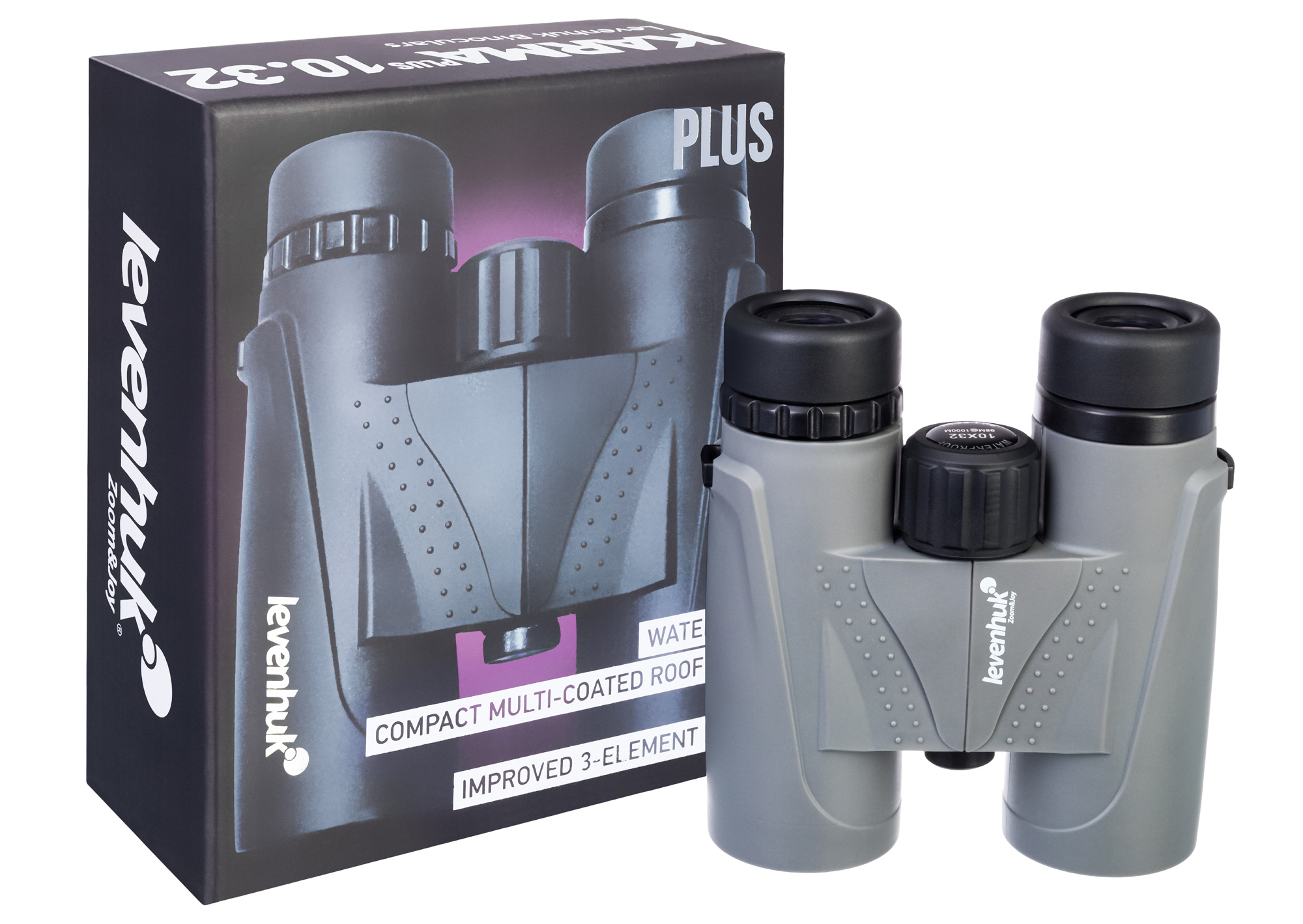 Биноклем Levenhuk Karma PLUS 10x32 удобно пользоваться. Чтобы подстроить его под ваши индивидуальные особенности, просто отрегулируйте межзрачковое расстояние и подберите оптимальное положение прибора относительно глаз. Есть и корректировка диоптрий. Плотное светло-серое резиновое покрытие защищает корпус от механических повреждений. Благодаря рельефной поверхности бинокль приятно держать в руках.