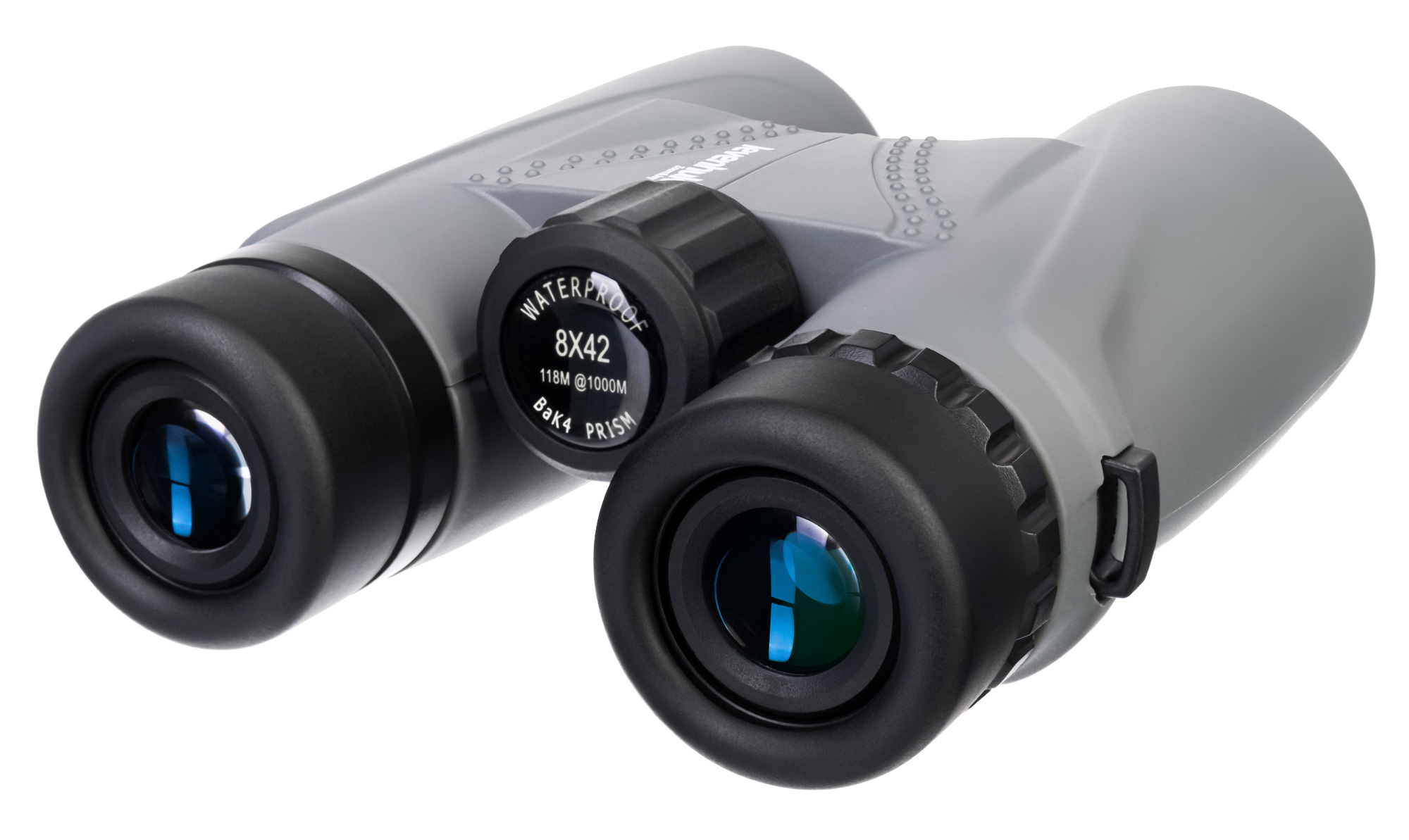 В конструкции бинокля учтено все для комфортного использования. Межзрачковое расстояние можно регулировать, с помощью поворотно-выдвижных наглазников удобно менять положение бинокля относительно глаз, есть возможность настройки диоптрий. Корпус покрыт плотной светло-серой резиновой оболочкой – она смягчает удары и защищает прибор от повреждений. Благодаря рельефной поверхности бинокль не скользит в руках.