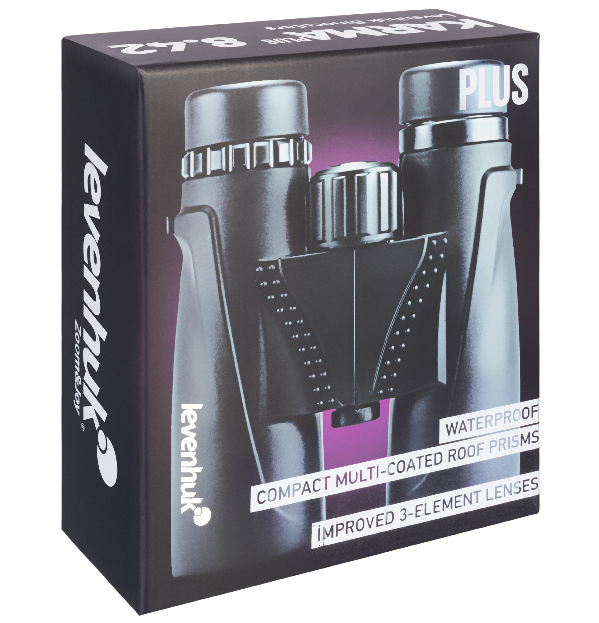 При своих отличных оптических характеристиках бинокль очень небольшой – в его конструкции использованы компактные roof-призмы. Объективы диаметром 42 мм собирают большое количество света и обеспечивают хорошую видимость не только днем, но и в сумерках. Окуляры состоят из трех элементов – улучшенная оптика позволяет получить изображение высокого качества. На все линзы нанесено полное просветляющее покрытие, повышающее светопропускание. Бинокль Levenhuk Karma PLUS 8x42 дает превосходную картинку с высокой детализацией и точной передачей цветов. Корпус наполнен азотом, так что оптика не запотевает даже при высокой влажности воздуха.