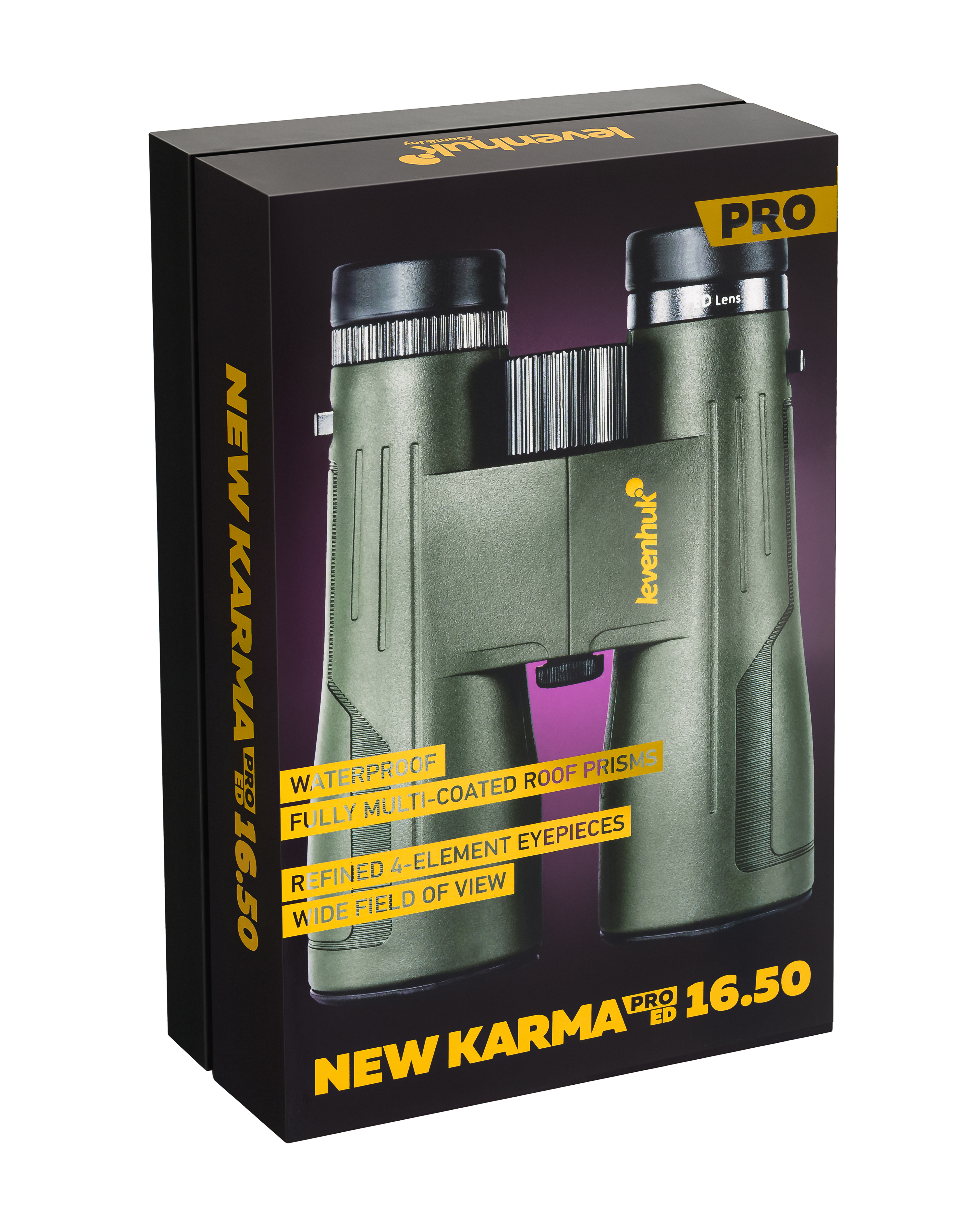 Бинокль Levenhuk New Karma PRO ED 16x50 – это оптический прибор для очень подробных наблюдений на больших расстояниях. 16-кратное увеличение, поле зрения 3,7°, светосильные линзы с апертурой 50 мм – все это делает бинокль в любом случае использовать для прицельного изучения сильно удаленных объектов, как при естественном солнечном свете, так и в сумерках. Объективы собирают много света, даже если солнце уже плотно соответствует линии горизонта, многослойное просветляющее покрытие, нанесенное на все призмы и линзы в формах, приводит к тому, что этот эффект и тонкое изображение обеспечивают четкость, видимость и реалистичность. Материал призмы – стекло BaK-4, линзы, изготовленные из ED-стекла с низким углом дисперсии, известная также своей технологией минимизации хроматических аберраций. Картинка «оживает» и благодаря конструкции окуляров, состоящей из четырех элементов в три группы.