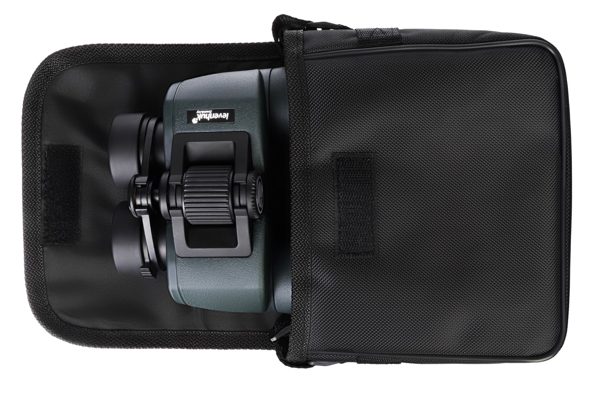 Бинокль изготовлен в герметичном корпусе, который не пропускает пыль и грязь. Благодаря текстурному темно-зеленому резиновому покрытию бинокль удобно держать в руках. В комплект входит широкий ремешок, так что бинокль можно повесить на шею. Кроме того, на корпусе есть крепление под штатив.