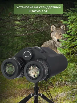 - Непроницаемый алюминиевый корпус и температурная устойчивость: бинокль может работать при любой погоде и в любой сезон