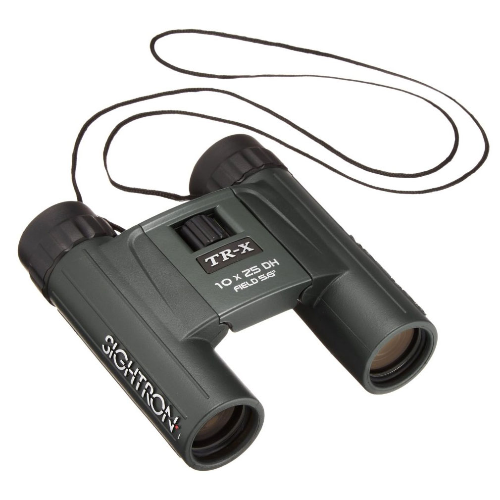 В основе оптической схемы бинокля Sightron TR-X 10x25 лежат малогабаритные roof-призмы. На линзы нанесено многослойное просветление, что повышает светопропускание системы. Картинка получается яркой и контрастной. Корпус сделан из алюминия и пластика, внешнее полимерное покрытие защищает прибор от пыли и механических воздействий. Сфокусироваться можно на целях, находящихся на расстоянии от 3,5 метра. Предусмотрена опция корректировки диоптрий.
