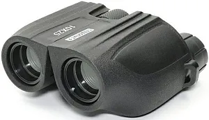 Двухэлементные окуляры бинокля дополнены удобными наглазниками, которые обеспечат комфорт наблюдений в очках. Боковой солнечный свет не помешает наблюдениям – наглазники устраняют блики и предотвращают рассеивание света. Материалом корпуса послужил пластик, от пыли и воды бинокль защищает резиновое покрытие. Модель комплектуется удобным чехлом.