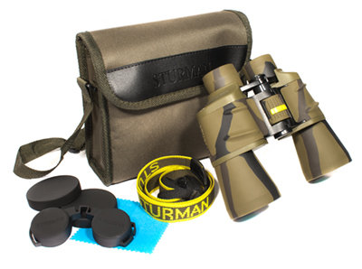 STURMAN 12x50 отличает не только практичное исполнение корпуса в камуфляжном стиле, но и объемное изображение очень высокого качества. Четкость и контрастность картинки достигается благодаря высокой светосиле бинокля, а также благодаря тому, что вся оптика изготовлена из высококачественного стекла ВК-7. Этой модели не страшны удары и царапины, поскольку резиновое покрытие корпуса предохраняет оптику от повреждений. Но при этом бинокль не защищен от попадания влаги внутрь корпуса, поэтому лучше не применять его в дождь или на морской прогулке.