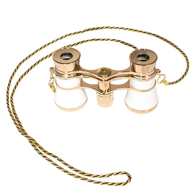 Среди преимуществ бинокля STURMAN 3x25 – малый вес и вынесенная окулярная точка. Это позволяет смотреть в бинокль на протяжении всего действия, не уставая. Его легко держать одной рукой, а также можно повесить на шею: в комплект поставки входит красивый витой шнур с золотистой тесьмой. Роскошное сочетание белого и золотого делает бинокль стильным вечерним аксессуаром, а надежный корпус гарантирует сохранность оптики. Галилеевская схема, лежащая в основе – простая и компактная система с минимумом элементов. Картинка получается яркой, насыщенной и ясной даже без призм и просветляющего покрытия.