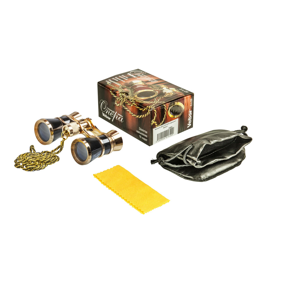 Классическая галилеевская оптическая схема с центральной внутренней фокусировкой, заключенная в черный лакированный корпус с напылением «золото». Трехкратное увеличение и широкое поле зрения позволят вам насладиться представлением даже с галерки.