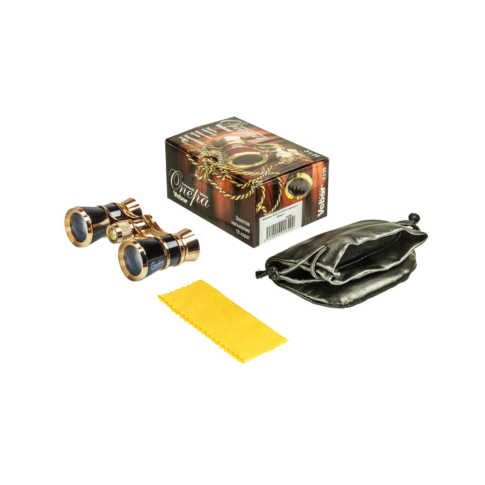 Классическая галилеевская оптическая схема с центральной внутренней фокусировкой, заключенная в черный лакированный корпус с напылением «золото». Трехкратное увеличение и широкое поле зрения позволят вам насладиться представлением даже с галерки.