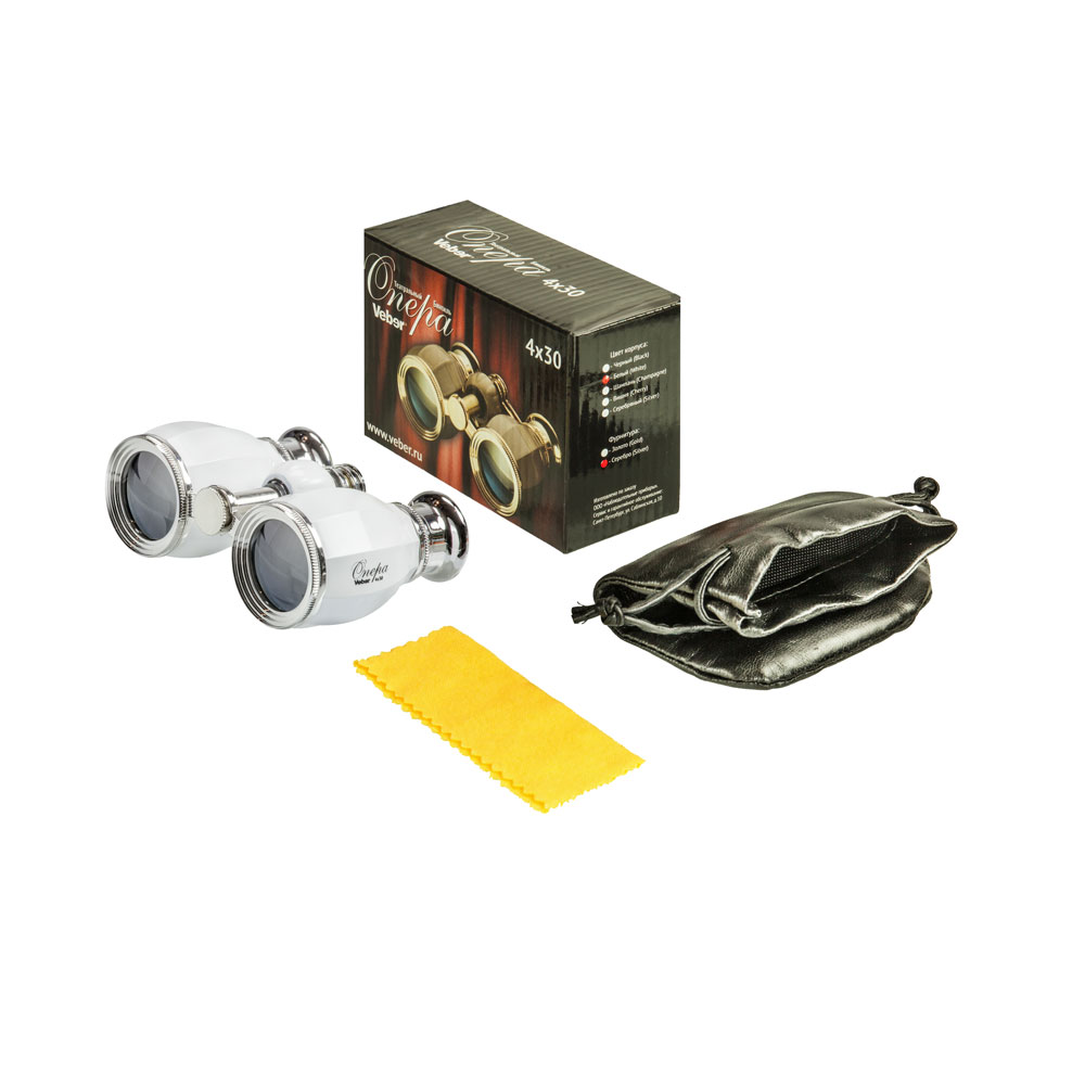 Классическая галилеевская оптическая схема с центральной внутренней фокусировкой, заключенная в серебристый лакированный корпус с напылением «серебро». Четырехкратное увеличение и широкое поле зрения позволят вам насладиться представлением даже с галерки.