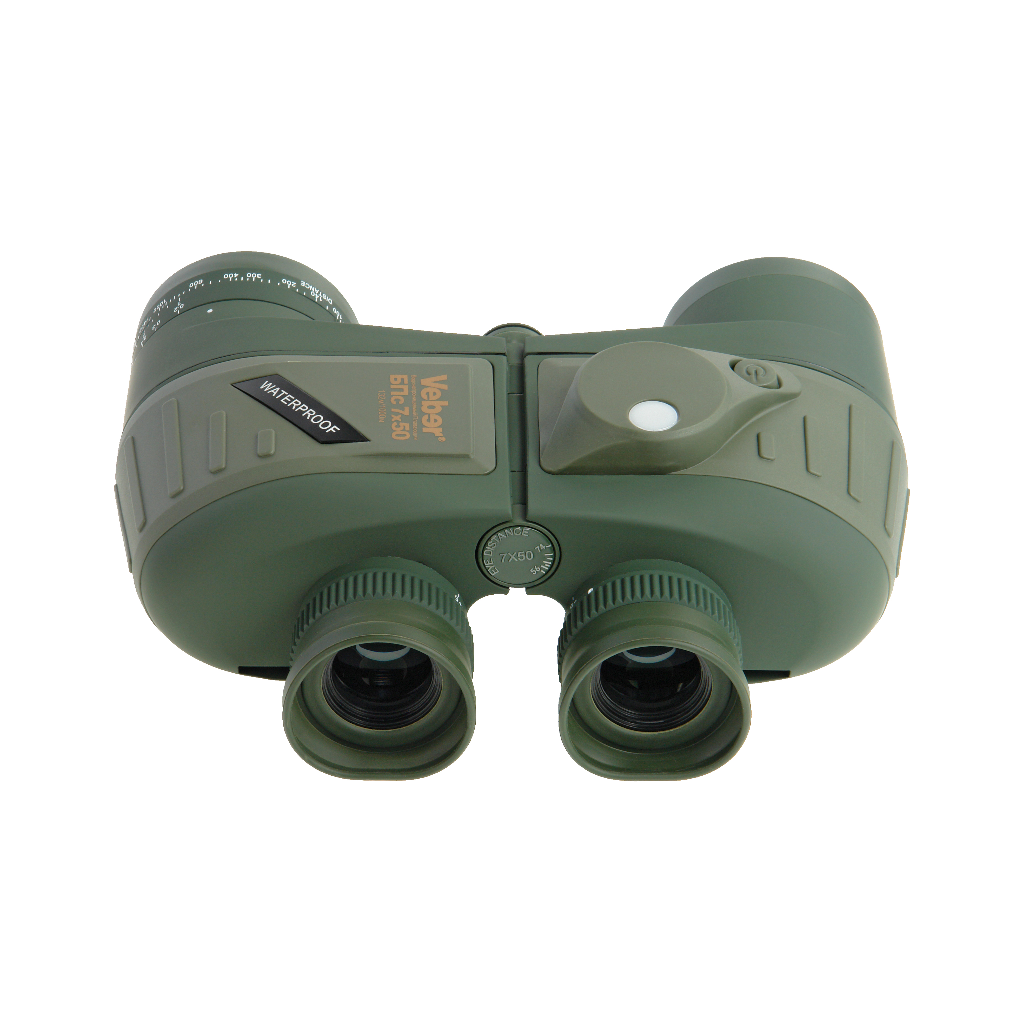 Veber 7х50 БПс WaterProof 7x50 — это НАСТОЯЩИЙ МОРСКОЙ БИНОКЛЬ. Еще он имеет дальномерную сетку для определения расстояний и встроенный компас с подсветкой (работает от батарейки — «таблетки»). В конструкции бинокля используется стекло марки BaK4, обладающее большим коэффициентом преломления, что позволяет уменьшить светохроматизм по краям поля зрения.