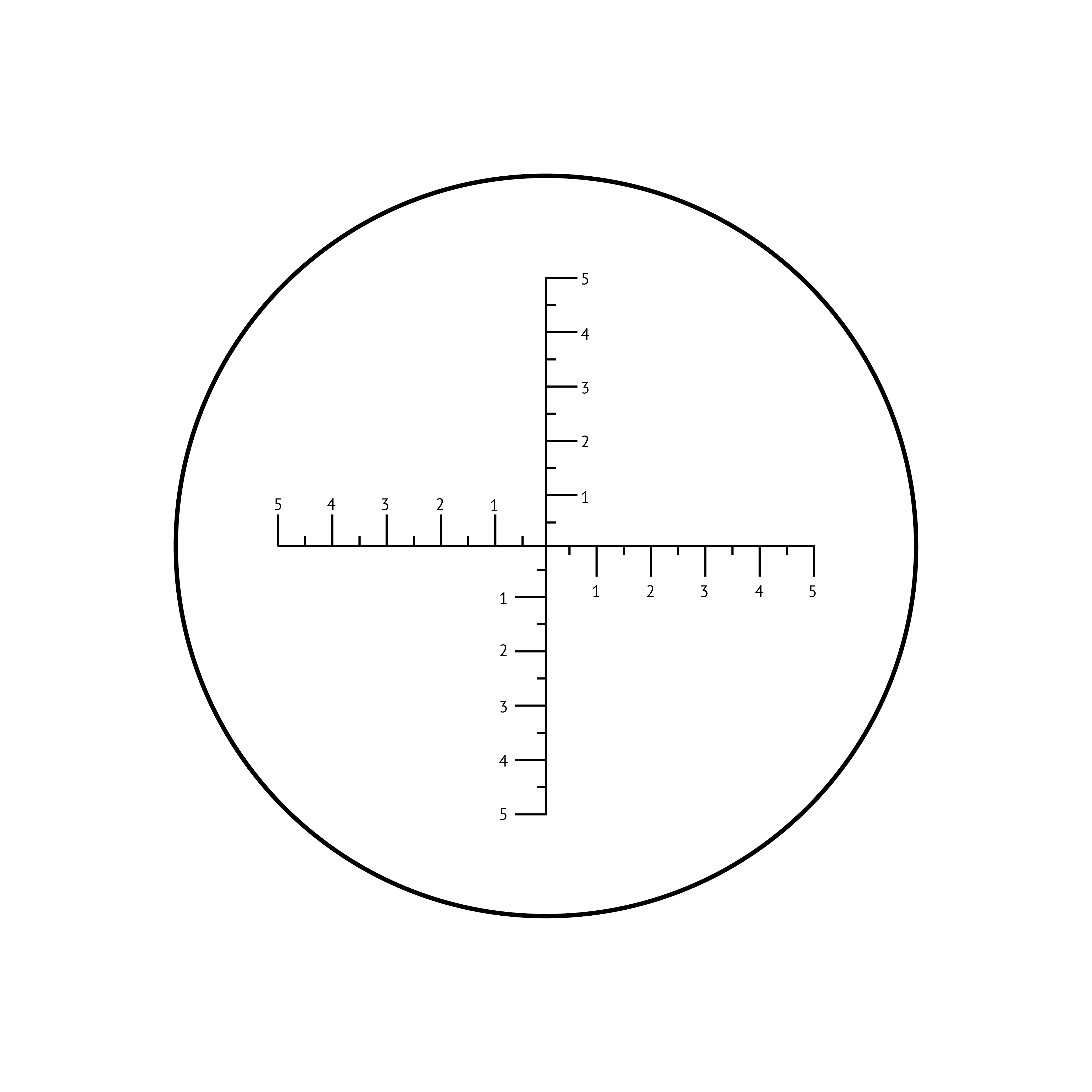 Измерительная сетка имеет горизонтальную и вертикальную шкалы, размеченные в MIL с ценой деления 5MIL (между длинными штрихами с цифрами – 10MIL). Привязка шкалы в MIL означает, что 10 MIL соответствует 1 метру на расстоянии 100 метров. Определенные по шкалам угловые размеры объектов можно использовать для расчета дальности до цели или ее размеров.