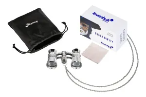 Бинокль Levenhuk Broadway 325B собран по галилеевской оптической схеме с использованием высококачественных линз. Материалом для оптики послужило стекло марки BaK-4. Полное просветление в несколько слоев обеспечивает яркое и высококонтрастное изображение. Наведение на резкость производится на обоих окулярах одновременно – при помощи фокусировочного барабанчика с рельефной поверхностью. Надежный и компактный корпус прибора сделан из металла.