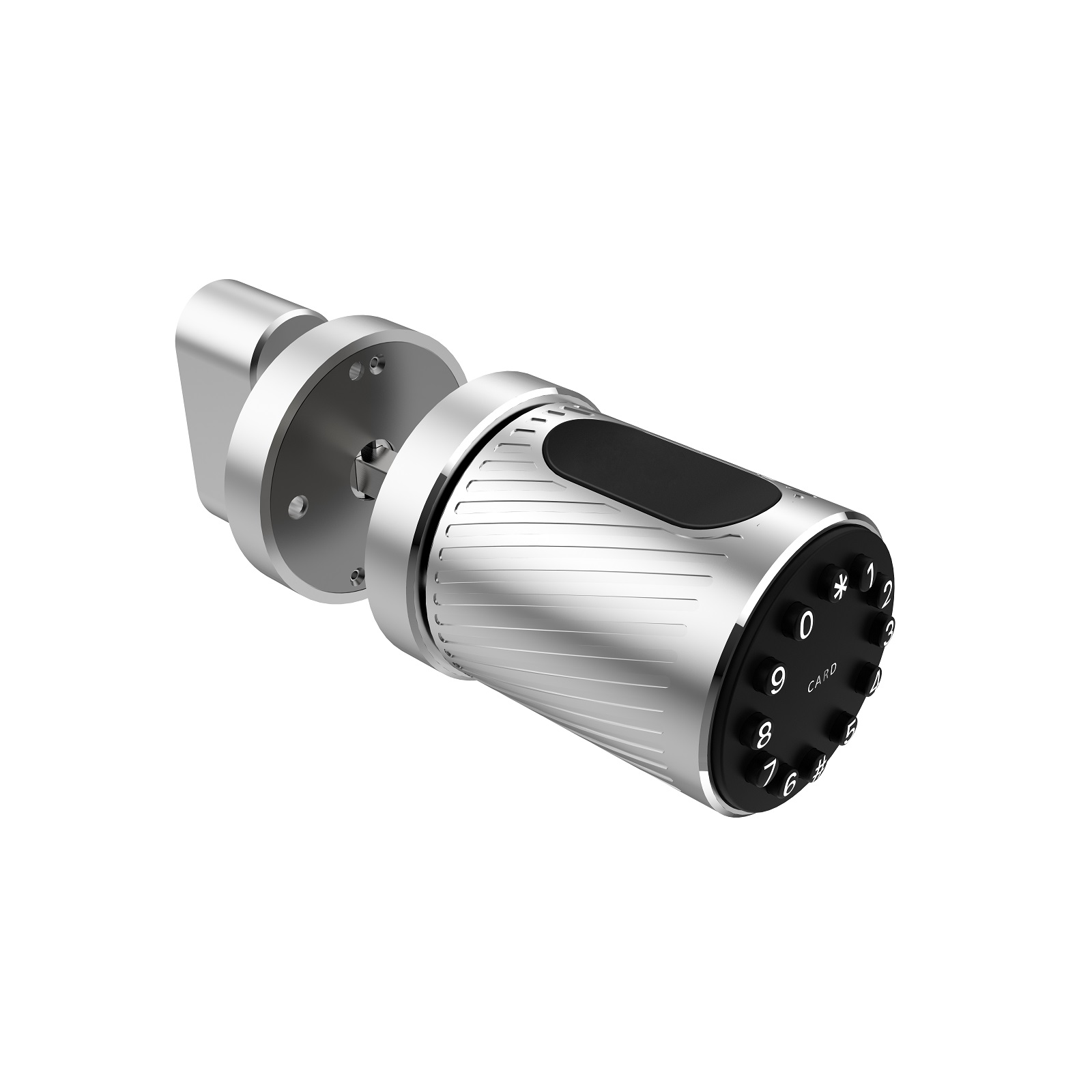 Замок состоит из поворотной внешней части с кодонаборной панелью, дверной защелки и поворотной внутренней части. В закрытом состоянии дверная защелка удерживает дверь в запертом состояние. Изнутри защелку можно разблокировать и открыть поворотом внутренней части.