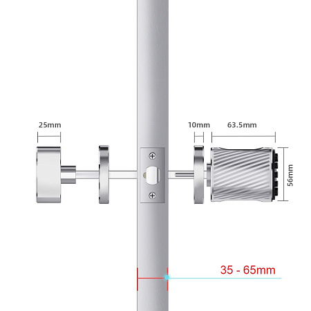Дверная защелка Selock Knob универсальна и проста как в монтаже, так и в использовании. Ее можно установить, как на левосторонние, так и на правосторонние двери; на дверь, которая открывается как наружу, так и внутрь помещения. Защелка отлично подойдет как для деревянной, так и для легкой металлической двери толщиной до 65 мм.
