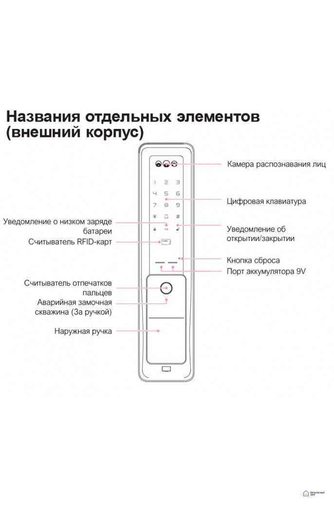 - Открытие замка по биометрическим данным: распознавание лица и отпечатка пальца. Стандартные способы открытия: RF-карта, ПИН-код, механический ключ.