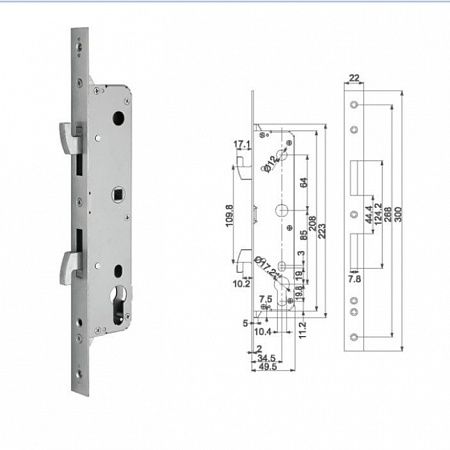Конструктивной особенностью замка является возможность установки на двери из узкого деревянного, алюминиевого либо пластикового (ПВХ) профиля шириной от 60 мм. Это возможно благодаря узким внешней, внутренней и врезной части замка.