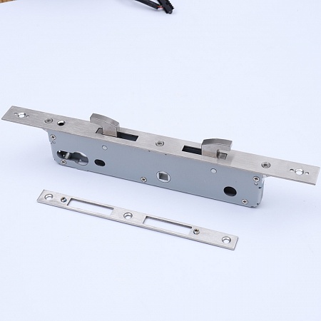 Врезная часть имеет крюкообразный запорный ригельный механизм для использования замка на раздвижных дверях.
