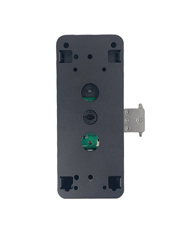 Умный вертикальный замок накладного монтажа. Конструктивной особенностью замка является возможность установки на двери из узкого деревянного, алюминиевого либо пластикового (ПВХ) профиля шириной от 60 мм. Это возможно благодаря узким внешней и внутренней части замка.