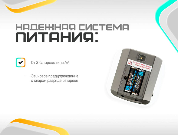 Замок работает от 2 пальчиковых батареек типа AA. Срок службы, которых более 12 месяцев.