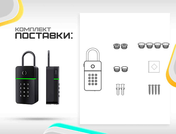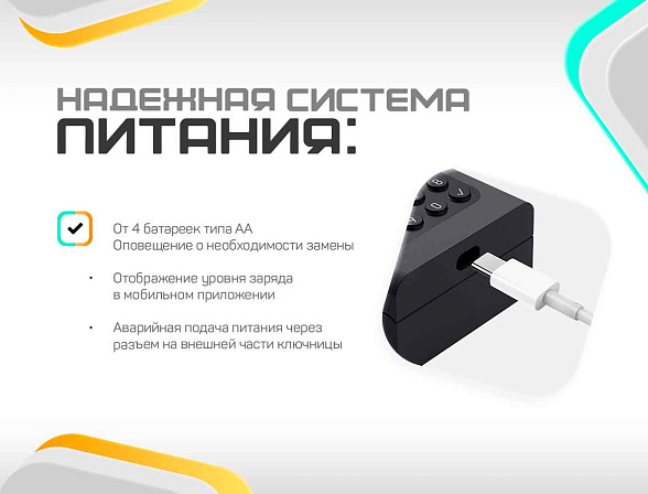 Keybox работает от 4 батареек типа AAA. Срок службы, которых более 12 месяцев.