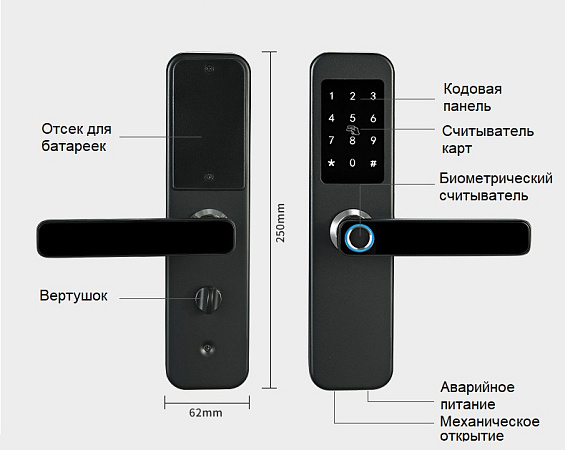 Открыть замок можно не только при помощи ввода пароля, но и при помощи пластиковой карты и отпечатка пальца.