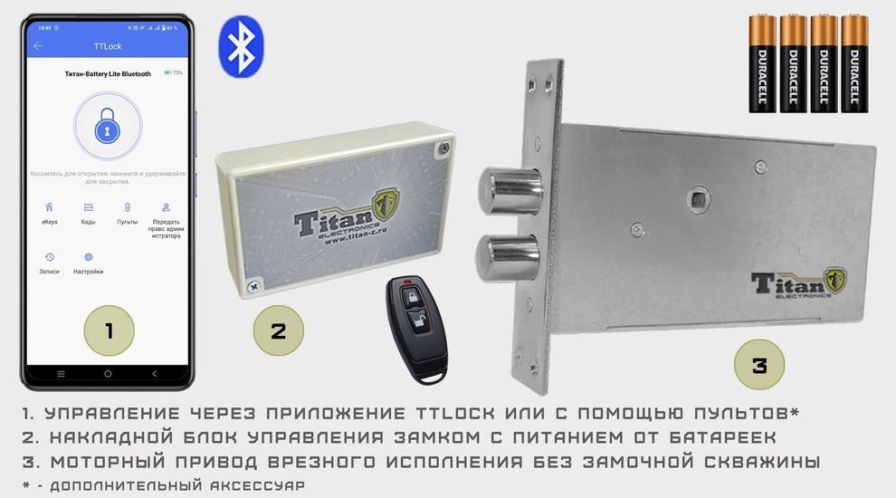 Замок невидимка ТИТАН-BATTERY LITE BLUETOOTH